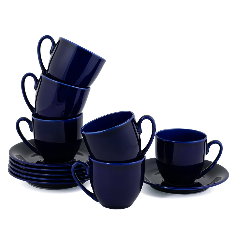 Experience the perfect blend of elegance and functionality with the Hitkari Basics Glossy Cobalt Cup and Saucer Set of 12 Pcs. Crafted from premium porcelain, this 190ml cup set is designed to elevate your tea or coffee experience with its sleek glossy finish and timeless design.